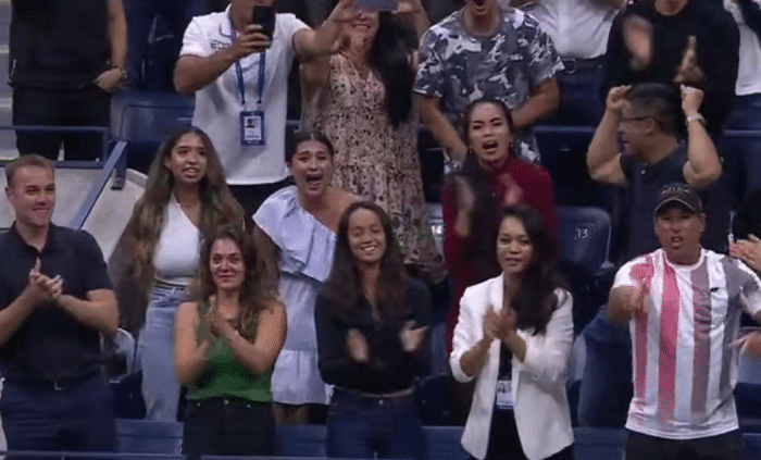 来源:JRS直播网09-10 10:01JRS直播网9月10日讯 ,美网女单半决赛先赛一场。最终,来自加拿大的19岁新星费尔南德斯再爆大冷,2-1击败赛会2号种子萨巴伦卡,强势挺进美网女单决赛。获胜一刻,费尔南德兹激动不已,掩面倒地随后握拳庆祝。而她的团队和家人,在看台上也是极为兴奋。