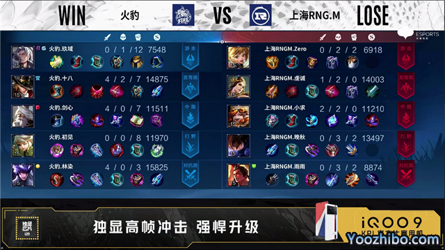 JRS直播网讯 北京时间6月15日2022年KPL夏季赛常规赛第一轮第二周第一日第一场,由火豹对阵上海RNG.M,以下是本场比赛快讯: