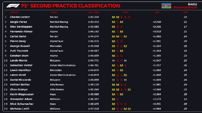- 【集锦】 [F1]2022赛季阿塞拜疆大奖赛二练最快圈 (勒克莱尔:1.43.224)2022-06-11 02:22:55
