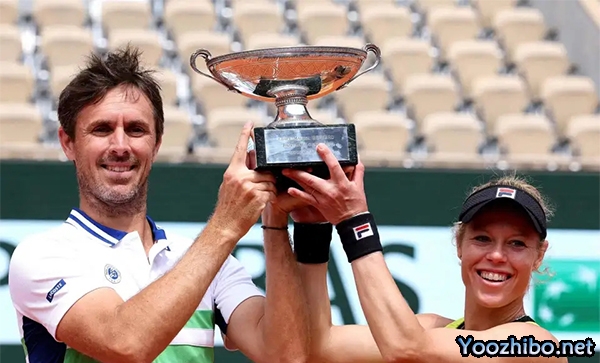 JRS直播网讯 6月6日,在2024法国网球公开赛混合双打决赛中,西格蒙德(德国)/瓦瑟兰(法国)组合2比0战胜克拉夫奇克(美国)/斯库普斯基(英国)组合,获得冠军。图为西格蒙德(右)/瓦瑟兰颁奖仪式上举起奖杯庆祝。