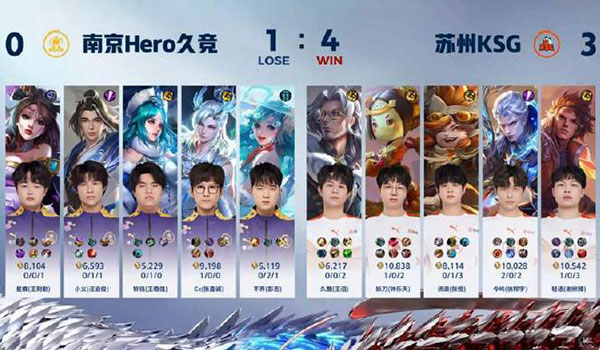 JRS直播网讯 北京时间6月20日,2024KPL夏季赛今日第二场比赛是由南京Hero对阵到苏州KSG!最终,南京Hero久竞0:3不敌苏州KSG。