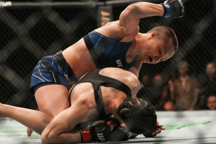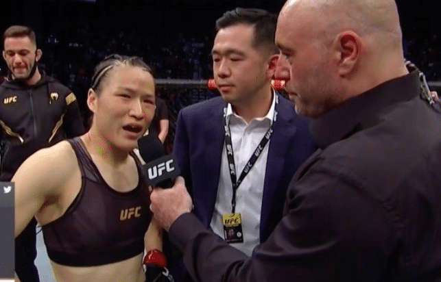 在此前UFC261草量级冠军争夺战中,张伟丽在首回合开场不久就被罗斯一个高扫直接撂倒,随后被按在地上连锤数拳。裁判随后叫停比赛,直接宣判张伟丽告负。张伟丽的21连胜宣告终结,也丢掉金腰带。