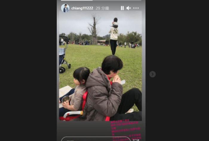 江宏杰在IG Story上Po出了一张照片,内容显示江宏杰自己背着儿子,而丈母娘则和孙女背靠背坐在草坪上吃东西。江宏杰还写道:“离开之前聊了很多,无奈不舍但始终还是必须分开,听到您回到老家心情更加复杂,但希望您可以一直平安健康,跟在宝岛的时候一样快乐开心。”
