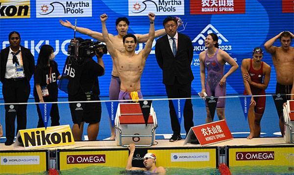 来源:JRS直播网07-27 09:30JRS直播网讯07月27日福冈世锦赛,中国队拿下男女4X100混合泳接力金牌,徐嘉余、张雨霏、覃海洋和程玉洁完美发挥,最终3分38秒57斩获冠军,力压美国和澳大利亚队。比赛结束之后,队员们都很激动,覃海洋低调的表示自己此前游了一枪,这次没有发挥出最好的状态。程玉洁则表示自己害怕掉链子,但还是顶住了压力。第一棒的徐嘉余表示自己等了这么多年,终于等来了最强的队友,这次是最富裕的一仗。