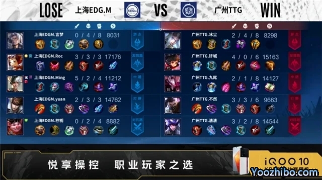 开局广州TTG射手换去对抗路。2分21秒广州TTG拿下暴君。5分48秒广州TTG摧毁敌方发育路外塔。6分44秒对抗路广州TTG击杀公孙离,拿下一血,上海EDG.M摧毁敌方对抗路外塔。7分06秒野区上海EDG.M击杀孙膑,镜三连决胜,打出1换3,拿下主宰。8分06秒中路广州TTG击杀盾山,拿下暴君。8分42秒广州TTG摧毁敌方对抗路外塔,上海EDG.M摧毁敌方发育路外塔。9分40秒中路上海EDG.M击杀猪八戒,打出0换4,摧毁敌方中路外塔、二塔,拿下暗影主宰。12分25秒上海EDG.M拿下暗影暴君。13分20秒上海EDG.M摧毁敌方对抗路二塔、发育路二塔,发育路击杀宫本武藏,拿下暗影主宰。16分19秒上海EDG.M拿下暗影暴君,17分51秒拿下暗影主宰。18分59秒上海EDG.M摧毁敌方发育路高地。21分37秒中路上海EDG.M击杀宫本武藏,打出0换2,摧毁敌方中路高地。22分16秒上海EDG.M击杀蒙犽,摧毁水晶拿下比赛。