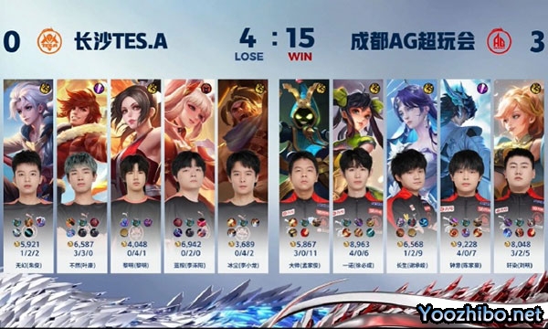 JRS直播网讯 北京时间6月15日,2024KPL夏季赛今日第三场比赛是由成都AG超玩会对阵到长沙TES.A!最终,成都AG超玩会3:0零封长沙TES.A。