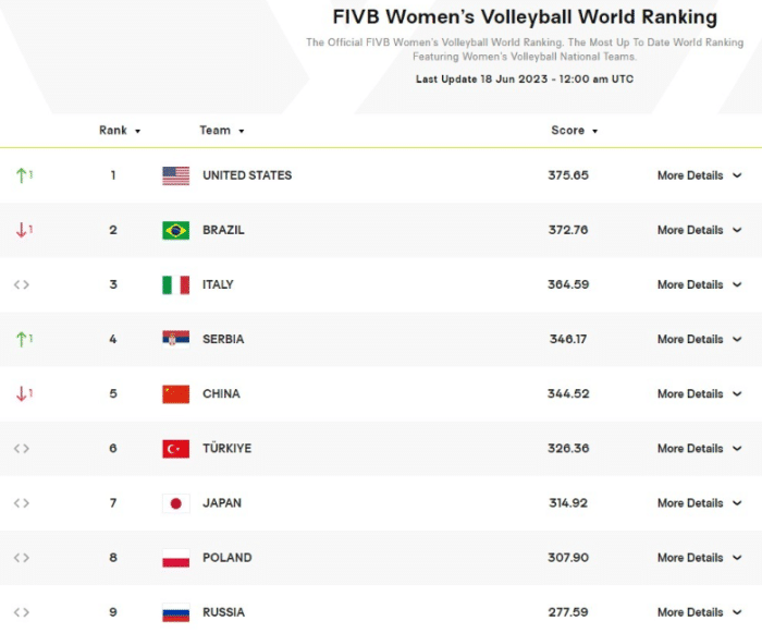 来源:JRS直播网06-20 11:00JRS直播网06月20日讯 世界女排联赛第二周结束争夺,中国女排的表现相对一般,不同于首周的4战全胜,来到中国香港之后,蔡斌率队的战绩是2胜2负,以连胜收官这一站的赛事,接下来将奔赴韩国水原参加分站赛的最后4场比赛。中国女排在世联赛的排名也从第二跌至第四,世界排名也下降,从第三滑落到第五名。