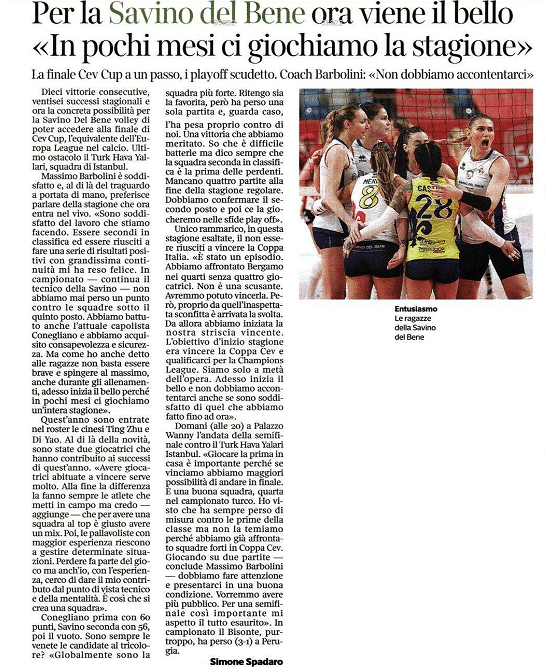 斯坎迪奇的社交媒体上发布了巴博里尼的采访,盛赞朱婷,将今年俱乐部的成功归功于朱婷的付出,他表示。有习惯取胜的球员是很重要的,就像朱婷这样的,要想成为顶尖球队,必须要有个超强的进攻组合、有个像朱婷一样经验丰富的选手,她可以为你成功处理很多关键分,这是非常重要的