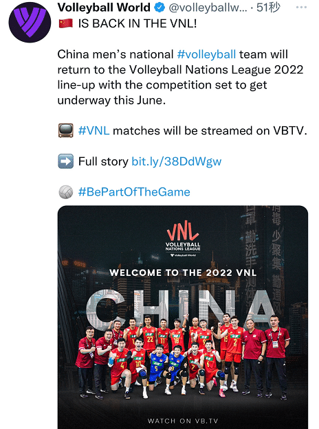 来源:JRS直播网04-30 10:48JRS直播网04月30日讯 晚上,中国男排传来重大利好消息,国际排联发文确认:中国男排重返2022年世界男排联赛,开赛时间是今年6月份。这样中国男排正式取代俄罗斯队,出战接下来的世界男排联赛,这对于中国男排来说是非常好的事情。
