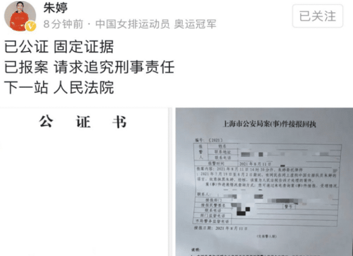 而朱婷在奥运会结束之后,因为成绩不佳和心情差,很少发声,在看到网络上有针对她造谣的事情,朱婷没有多说,直接在社交媒体上晒出了自己报警的事情,时间是8月11日,也就是东京奥运会刚刚结束不长的时间。之后朱婷维权,希望可以严肃处理,追究这些造谣者的责任,非常霸气。