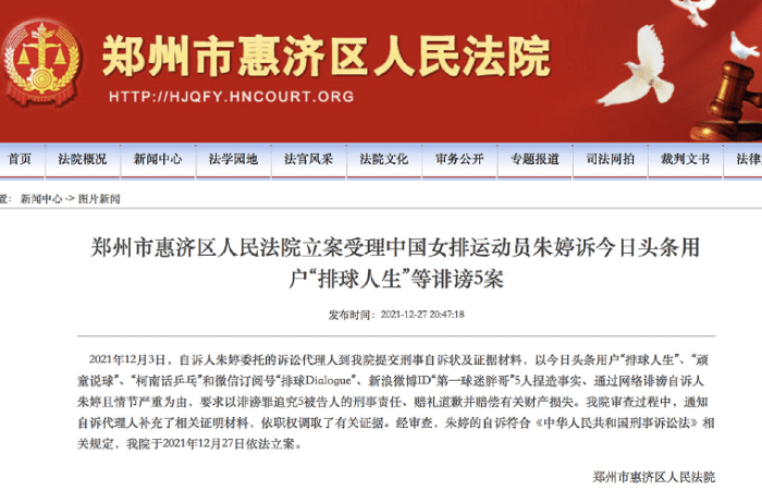 来源:JRS直播网12-28 10:40JRS直播网12月28日讯 近日中国女排队长朱婷维权的事情吸引了很多人的关注,有5名网友、自媒体在针对进行造谣。其实朱婷在8月11日就报警了,到了12月27日,朱婷的报警已经正式被立案受理,希望这些造谣者可以承担刑事责任、赔礼道歉并赔偿有关财产损失。这件事情一出,不少人表示朱婷的做法是对的,面对这些无中生有的造谣者,就是需要拿起法律的武器来维权。
