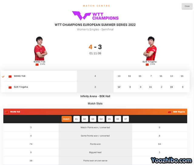 2022世乒联冠军赛(布达佩斯站)女单半决赛 王艺迪vs孙颖莎 全场录像回放