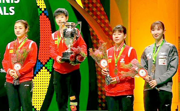 本届德班世乒赛,王曼昱报名了2个项目,可惜全都丢了冠军。女双联手孙颖莎的“海产姐妹”止步于四强,获得铜牌。女单面对陈幸同吃到败仗,无缘奖牌。这样本届世乒赛的女单卫冕冠军,王曼昱只有一枚铜牌入账。