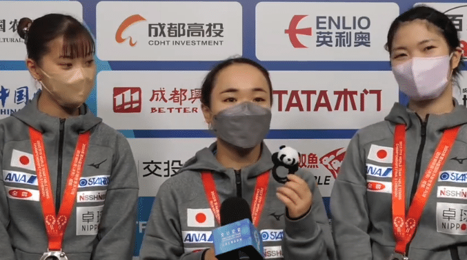 赛后谈到戴着熊猫配饰进行领奖,伊藤美诚表示:“其实这个熊猫的配饰,是早田希娜和她的教练在酒店发现的,这是一个画自画像的活动,我们六个人都画了自己的自画像,然后获得了这样的配饰。我们今天在颁奖仪式上佩戴它,也可以借助这个行为传递两国之间和睦友好的情谊。”