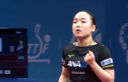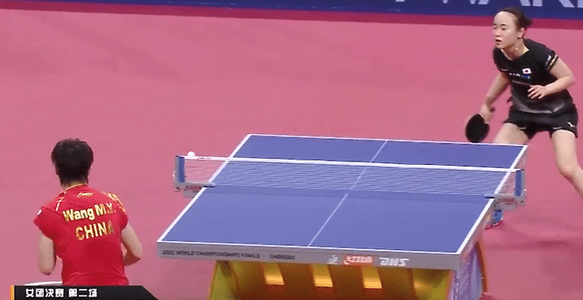 第一局初期,伊藤美诚正反手连续施压,开场就连得3分,王曼昱反手拧个直线,得分止血。伊藤美诚反手拧过来出界,双方中路相持,王曼昱反手也出界。王曼昱上抢拉个长台,伊藤美诚回球飞了,紧接着伊藤美诚失误送分,王曼昱扳成4-4平。