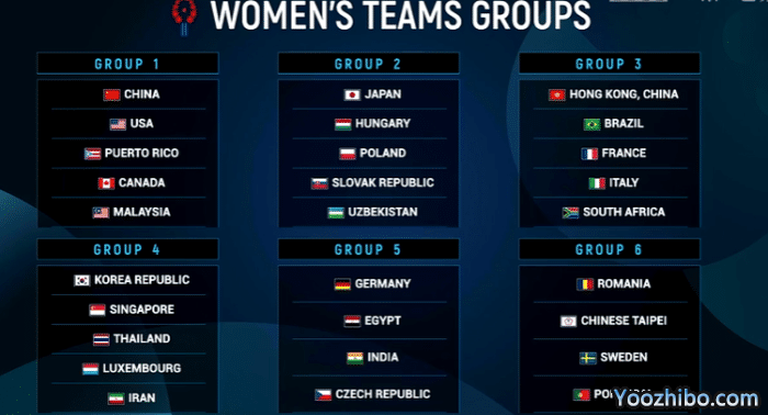 抽签结果中,国乒女队的小组赛对手是:美国队、波多黎各、加拿大和马来西亚。其他小组层面,第4和第5小组的要更加激烈。