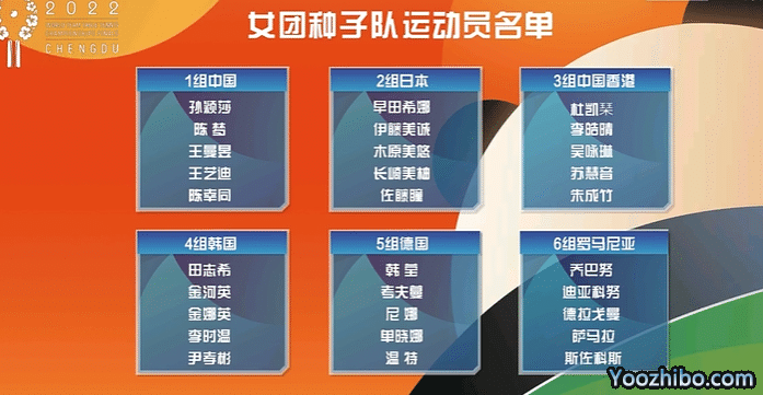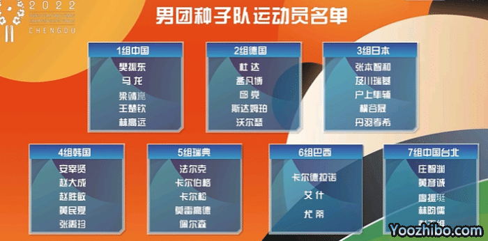 男团和女团种子队名单,他们先占据各个小组的一个位置,如下: