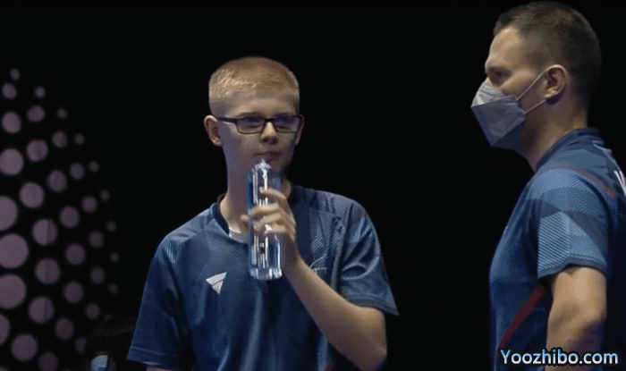 这是比赛进行到第二局,梁俨苧和徐海东7-4领先,逐渐拉开比分差距,15岁的弟弟F-勒布伦一个回球出界失误,比分来到4-8落后。他对于失误非常生气,直接把球拍摔在球台上,还不断怒吼表达自己的情绪。