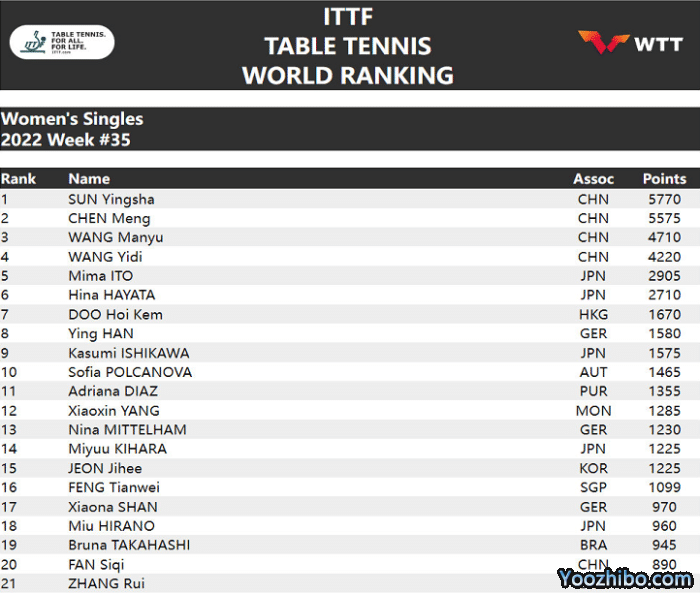 国际乒联第35周排名!孙颖莎和樊振东霸榜,00后小将排名暴涨