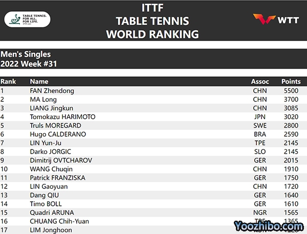 来源:JRS直播网08-04 09:24JRS直播网讯 我国的男子乒乓球队选手们在赛场上十分活跃,他们都尽全力在比赛中拿到名次和积分,那么你知道最新国际乒联男单世界排名是怎样的吗?小编已经整理好相关内容了,接下来一起看看吧!