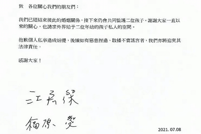 福原爱和江宏杰离婚的事情进度还是很快的,最开始是2021年2月下旬,福原爱江宏杰被传婚变,不过随着两人社交媒体的互动而被“辟谣”。但是很快两人分居、不和、福原爱被曝婚内与男子约会、福原爱和和江宏杰姐姐取关等等,一直到4月份,江宏杰向法院提出离婚诉求。现在是7月8日,两人正式离婚。