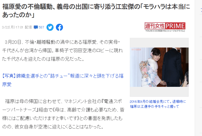 日媒随后分析,福原爱怀着对于美好婚姻生活的向往,只身一人前往异域。不过,等待他的是国际婚姻带来的不同文化生活,以及更多像“杂耍”一样的商业活动。福原爱把这种不满发泄到丈夫身上,或许是再自然不过的了。日媒还例举了福原爱之前对于婚姻的种种不实际想法,比如“每天亲100次”等。日媒评论:“她似乎也对婚姻生活做了太多不切实际的梦。”