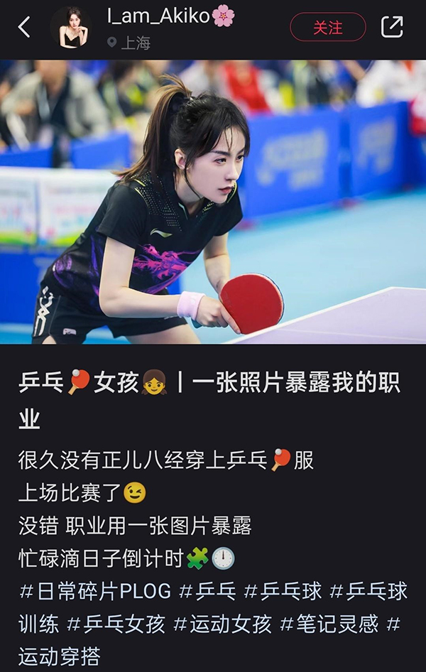 “ I_AM AKIKO”美女的晒照也是很快引发了很多球迷的关注,因为一直以来虽然林高远的穿衣风格很潮,但是在感情上面,林高远却一直没有太多的动静,这也让有些球迷为他担心。而如今,“ I_AM AKIKO”的晒图也是让很多球迷认为林高远的恋情曝光了,特别是当“ I_AM AKIKO”晒出了穿上乒乓球球服的时候表示很久没有正儿八经的穿上乒乓球服了上场比赛了,没错,职业用一张图片暴露。化着精致的妆容,“ I_AM AKIKO”上传的是自己一张在比赛的照片,从照片的比赛现场来看,“ I_AM AKIKO”曾经也是个职业的乒乓球运动员,只不过相对于林高远的生涯高度,“ I_AM AKIKO”可能没有走的那么远而已。