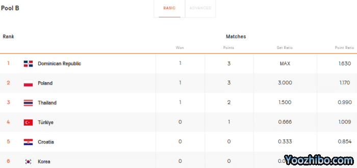 B组,多米尼加首轮3-0击败韩国队,位居小组第一。波兰队3-1克罗地亚,暂时位居第二名。泰国队首轮3-2逆转击败土耳其,这也是本届世锦赛第一个冷门,泰国队的整体实力不如最近几年上升明显的土耳其,她们也一度处于落后,但还是在决胜局击败对手,目前泰国队排名第三。这个小组中除了韩国队新老交替实力偏弱之外,波兰、土耳其、多米尼加、泰国、克罗地亚,均有可能出线。