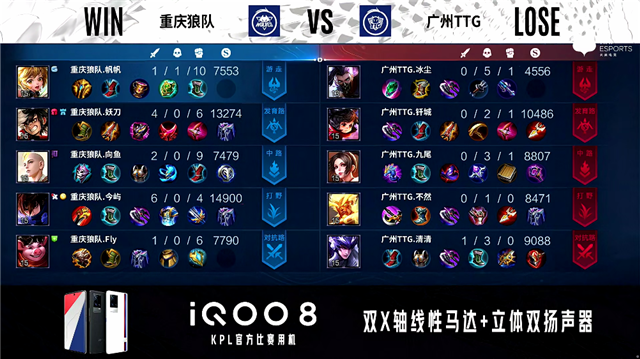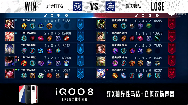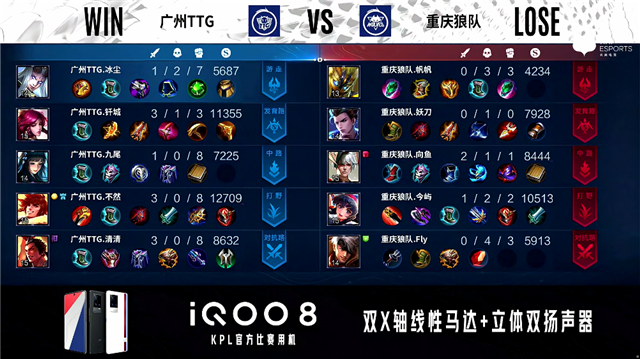 JRS直播网讯: 12月18日2021年KPL秋季赛季后赛败者组决赛,由广州TTG对阵重庆狼队,以下是本场比赛快讯。