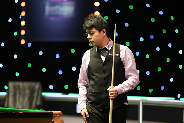 第三局鲁宁长台拼进左侧底袋红球,此后又上手拿下9分后黑球不进。特鲁姆普打进右侧中袋红球上手,单杆107分一杆清台2-1领先。第四局,特鲁姆普传进左侧底袋袋口红球上手,打进12套“红+黑”后,第13颗黑球停在袋口,错失147的机会,单杆97分零封,以3-1领先进入中场休息。