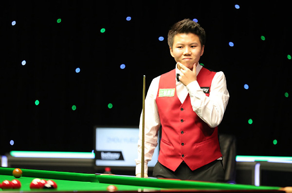 第五局,周跃龙先拿下42分,利索夫斯基防守留机会,周跃龙架杆打进后再次上手,又拿下35分以70-0零封,4-1继续扩大优势。第六局周跃龙只打进一颗红球,利索夫斯基单杆得到56分,以70-1胜出追上一局。第七局周跃龙再接再厉,几次上手以70-1再下一城,5-2获得赛点。