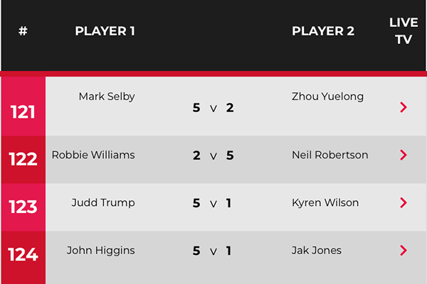 JRS直播网讯:北京世界10月17日,2020年斯诺克英格兰公开赛继续在米尔顿-凯恩斯进行,1/4决赛特鲁姆普面对威尔逊以5-1大胜,打进四强将迎战同样5-1过关的希金斯。