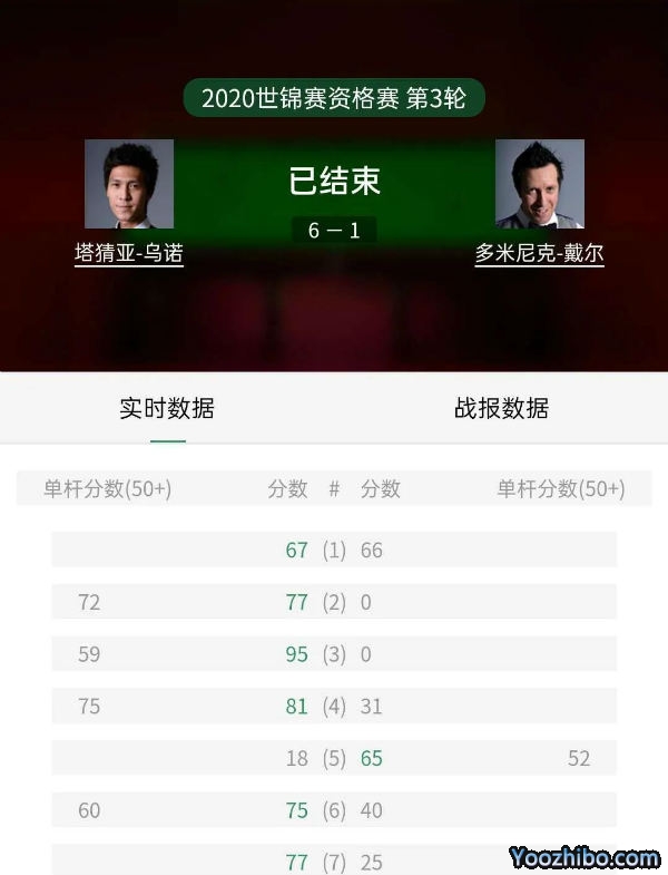 [虎牙视频]2020斯诺克世锦赛资格赛 塔猜亚-乌诺vs多米尼克-戴尔 下半场录像回放