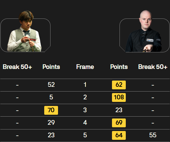 最后一局比赛,斯莱瑟重新调整状态,没有再给雷佩凡机会。他在开局阶段就迅速进入状态,通过精准的进攻和严密的防守,建立起领先优势。雷佩凡虽然努力追赶,但斯莱瑟始终保持着稳定的发挥,没有给雷佩凡太多的机会。最终,斯莱瑟顺利拿下第五局,从而以 4 - 1 的比分战胜雷佩凡,晋级下一轮。