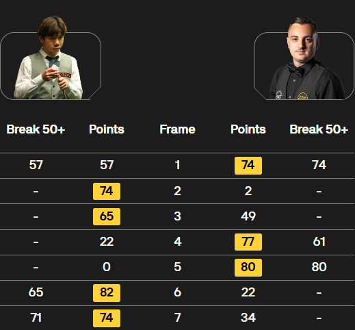 第七局:决胜局中,雷佩凡顶住压力,以单杆65分拿下比赛,最终以4-3的总比分击败海顿-平海,晋级下一轮。