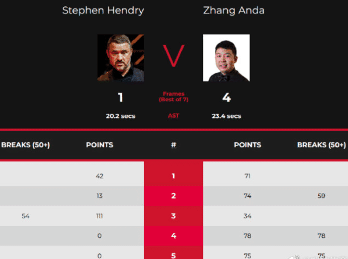 作为昔日台球皇帝并且拥有7座世锦赛冠军奖杯,亨德利是当之无愧的斯诺克传奇。但传奇也会老去,如今的亨德利已经53岁,可以说垂垂老矣。上赛季,亨德利复出之后并没有展示出昔日的能力。本场比赛,面对世界排名仅有第70位的张安达,亨德利同样非常被动。全场比赛,亨德利仅仅打出一杆50+。