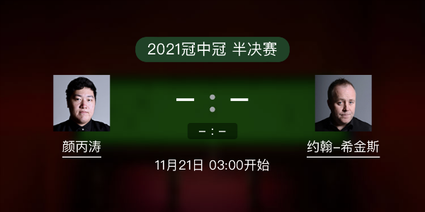 斯诺克冠中冠半决赛:11月21日 03:00 颜丙涛vs希金斯
