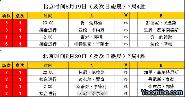 比赛局数:决赛为9局5胜,其他阶段为7局4胜