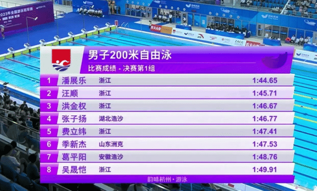 来源:JRS直播网05-05 10:27JRS直播网05月05日讯 ,全国游泳冠军赛继续进行。浙江选手潘展乐继续展示自己疯狂的竞技状态。在男子200米自由泳决赛中,潘展乐游出了1分44秒65的出色成绩,后程发力碾压汪顺夺得冠军。这一成绩,只比孙杨保持的全国纪录和亚洲纪录差了0.26秒。从50米到100米再到200米,潘展乐都展现了世界级的实力。毫不讳言地说,新的中国泳坛一哥已经横空出世,他就是潘展乐。
