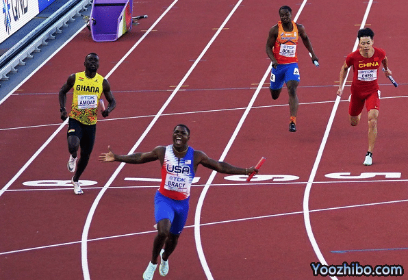 比赛开始后,美国队便展示了非常强大的实力。这支由科尔曼、莱尔斯、霍尔和布雷西组成的队伍,只要在交接棒不出现问题,统治力十足。最终,美国队跑出了37秒87,刷新今年世界最好成绩,小组头名晋级决赛。中国队在前三棒还排名第3位,但最后一棒陈冠锋的表现一般,最终38秒83,排名小组第五无缘晋级。