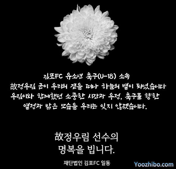 来源:JRS直播网05-03 15:21JRS直播网05月03日讯 ,韩国足坛传来噩耗,金浦俱乐部U18梯队一名球员因为霸凌而自杀,金浦俱乐部官方表示哀悼,韩媒也纷纷跟进报道。根据官方消息称金浦俱乐部将会在4日的主场比赛中为这名小球员举办悼念活动。