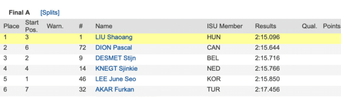 匈牙利华裔名将刘少昂发挥出色,他的爸爸是中国人,母亲是匈牙利白人,刘少昂在中国的人气也很高,他的比赛同样获得巨大关注度,刘少昂和任子威、武大靖等中国运动员还是很好的朋友,经常一起训练。此次,刘少昂包揽世锦赛男子1500米和500米两项冠军,成为最大赢家,展现了自己的实力。