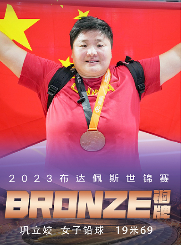 中国队的成绩可以说大滑坡,去年的俄勒冈田径世锦赛,中国队拿下2金1银3铜的成绩排在奖牌榜第五位,今年则只有2枚铜牌,斩获奖牌的选手是女子铁饼的冯彬和女子铅球的巩立姣,去年冯彬获得金牌,巩立姣是银牌,到了布达佩斯,两人的成绩有下滑。中国队的男选手们表现低迷,颗粒无收。