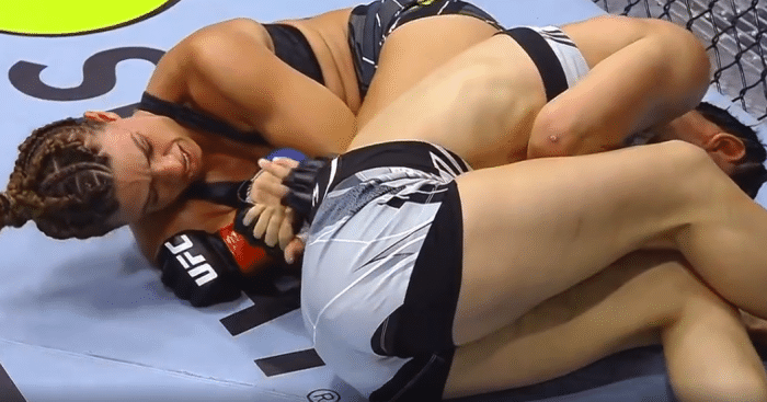 站立横扫+险重拳终结!中国女将闪耀UFC赛场,苦战5局胜柔术女神