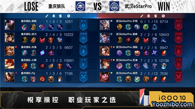 重庆狼队选用:关羽、铠、干将莫邪、公孙离、太乙真人