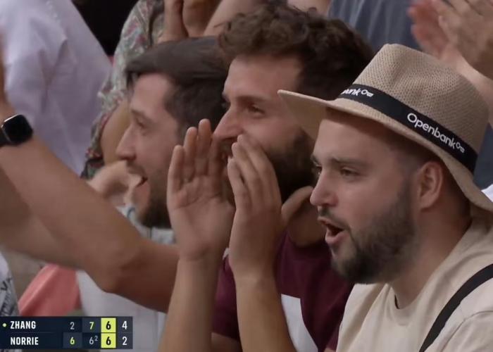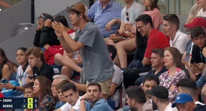 本场比赛,张之臻打得十分顽强,尽管首盘2-6脆败,但不气馁的他连续利用两个抢七局,逆转翻盘。张之臻如此荡气回肠的表现,也折服了现场的外国球迷。每当张之臻打出好球,他们甚至还效仿中国观众,为他喊“加油”。