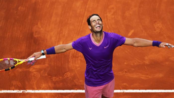 来源:JRS直播网05-06 20:54JRS直播网05月06日讯 周四在马德里举行的大师赛16强赛中,21次大满贯冠军纳达尔在抢七中挽救了四个赛点,以6-3、5-7、7-6(9)的比分击败了曾经的前十球员戈芬,这对他来说是具有里程碑意义的一天。
