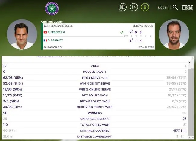 不过,从比赛的进程来看,费德勒在经历第一盘的考验之后,就主导了比赛的节奏。