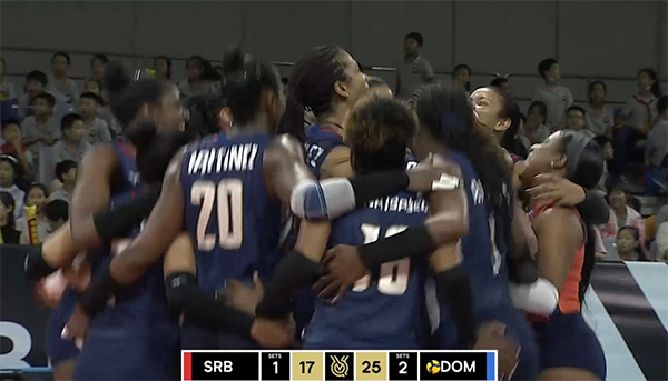 比赛结束之后,多米尼加的球员们如同夺冠一般庆祝,非常兴奋,她们拿下了一场极其关键的比赛,拯救了自己晋级的希望。多米尼加此前2-3不敌捷克队,爆出冷门,后期她们强势爆发,保持全胜,如今连此前不败的塞尔维亚队也拉下马,战绩4胜1负,重新掌握直通巴黎奥运会的主动权。多米尼加是新科中北美,在决赛中击败美国队夺冠,实力强大。