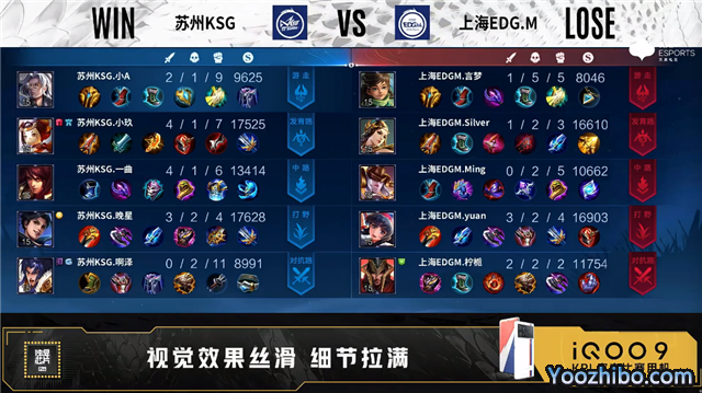 开局上海EDG.M孙尚香中路抢线。2分17秒苏州KSG拿下主宰,上海EDG.M拿下暴君。4分37秒苏州KSG主宰处打出0换2。5分13秒苏州KSG中路击杀孙尚香。5分27秒上海EDG.M中路击杀暃。10分23秒上海EDG.M中路打出0换2。12分18秒上海EDG.M摧毁敌方中路二塔。13分40秒双方野区1换1。15分01秒苏州KSG孙膑抢到暗影主宰。16分32秒中路团战上海EDG.M打出1换5,孙尚香拿到三连决胜。16分56秒上海EDG.M摧毁敌方水晶拿下比赛。